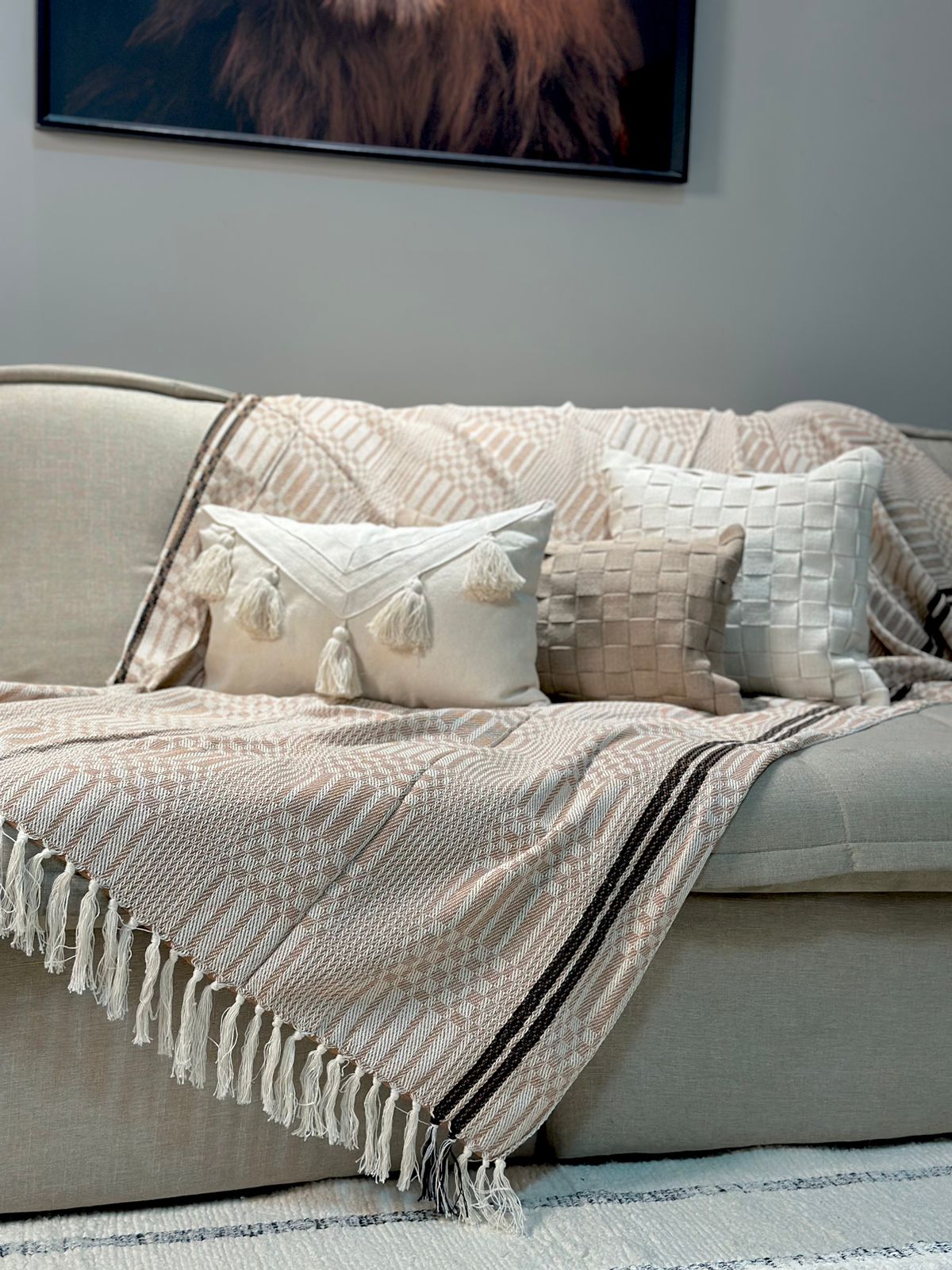 Our 40x40 Black and White Plaid Woven Blanket is perfect for adding a sophisticated and cozy touch to your space. Handcrafted by talented artisans, this blanket is incredibly soft and cozy, ideal for curling up while watching a good movie or reading a book. Its classic black and white design lends itself to a variety of combinations, making it versatile for any space in your home.